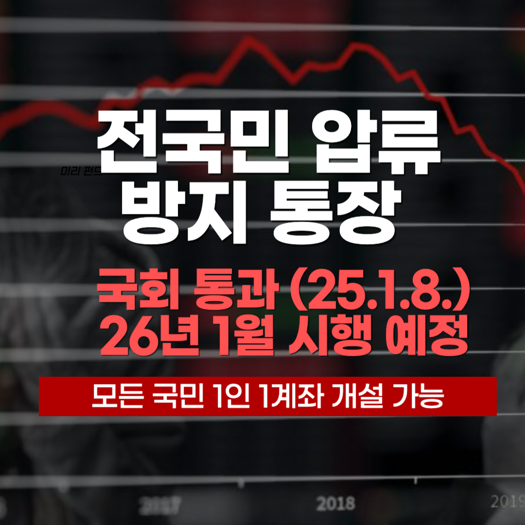 2025년 1월 8일, ‘전국민 압류방지계좌’ 법안이 국회에서 만장일치로 통과됐어요! 이 법은 경제적으로 어려운 사람들도 최소한의 생활비를 지킬 수 있도록 만든 거예요. 이제는 경제적으로 힘든 사람들뿐만 아니라 모든 국민이 통장 압류로부터 보호받을 수 있어요.